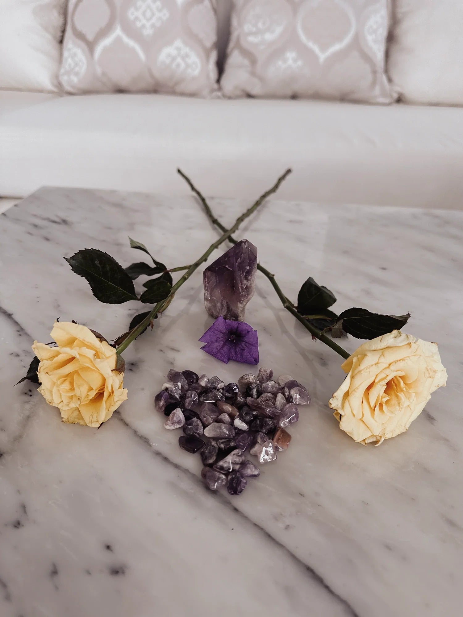 Amethyst imbues groundedness, tranquility, and calm. A great stress reliever as well as a tool for connection us to spirit through the opening of the "third eye" chakra known as intuitive seeing.